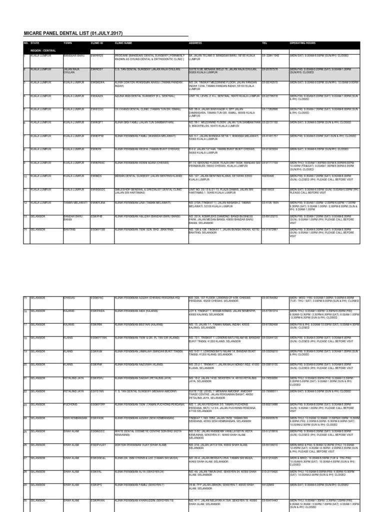 Micare Panel Clinic List Malaysia 2021 / Micare Panel Gp List For Corporate Bsi Berhad 15 May 2020 No State Town Clinic Name Address Tel Operating Hours